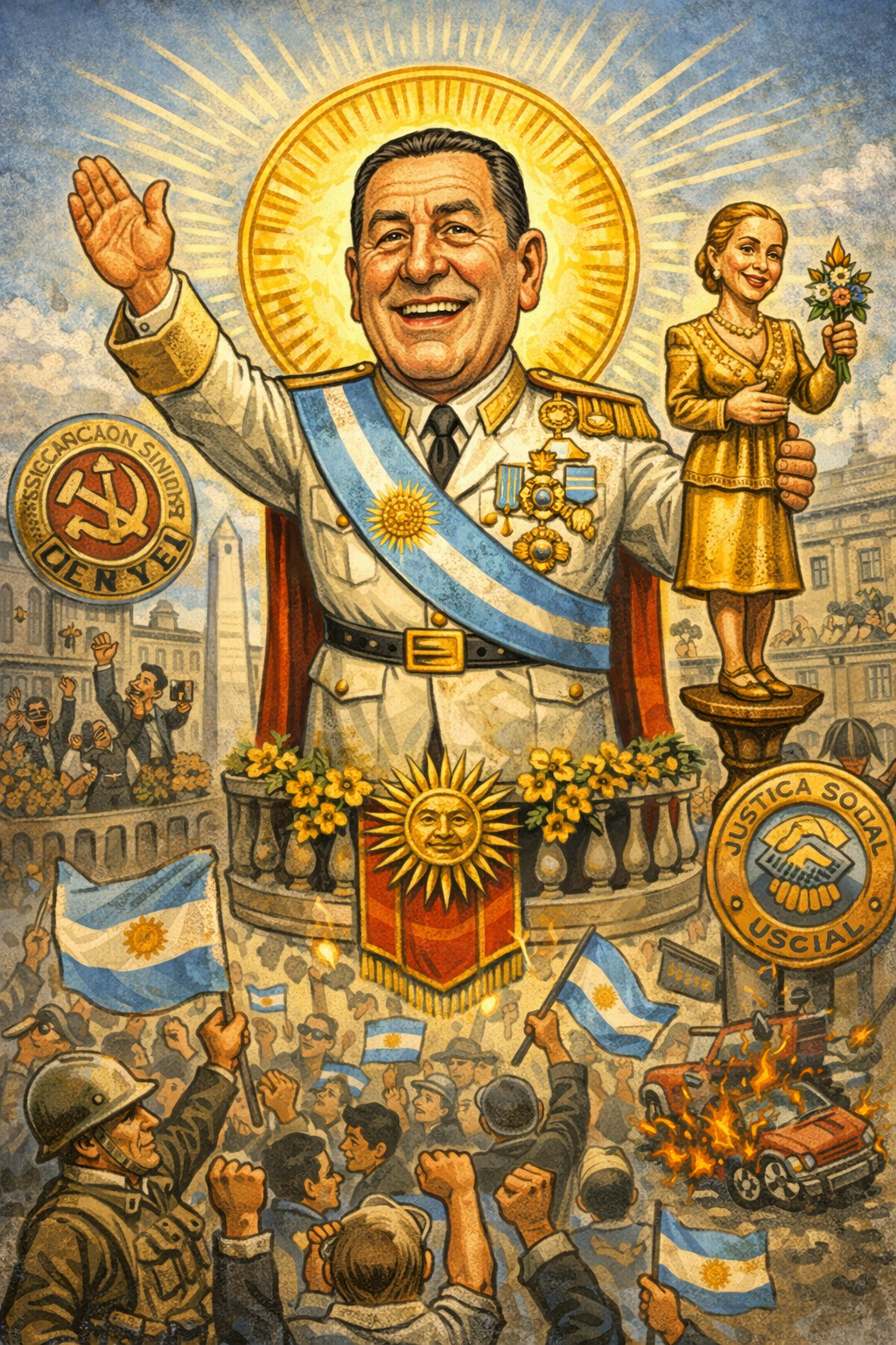 Perón entendió algo elemental que muchos líderes ignoran: para sobrevivir al tiempo, la política debe adquirir la forma de un mito narrativo. Gobernar es secundario; lo decisivo es construir el relato que sobrevivirá al gobierno. Y el peronismo fue, desde el inicio, un relato cuidadosamente diseñado. El líder providencial que habla al pueblo desde el alma. La compañera elevada a figura sacrificial. La comunidad redimida frente a una oligarquía eterna que acecha en la penumbra con pérfidos intereses cipayos. Dentro de ese teatro simbólico la historia no progresa ni se resuelve; se reactualiza. Cada generación revive el drama como si se tratara de una obra litúrgica que jamás abandona su escenario.