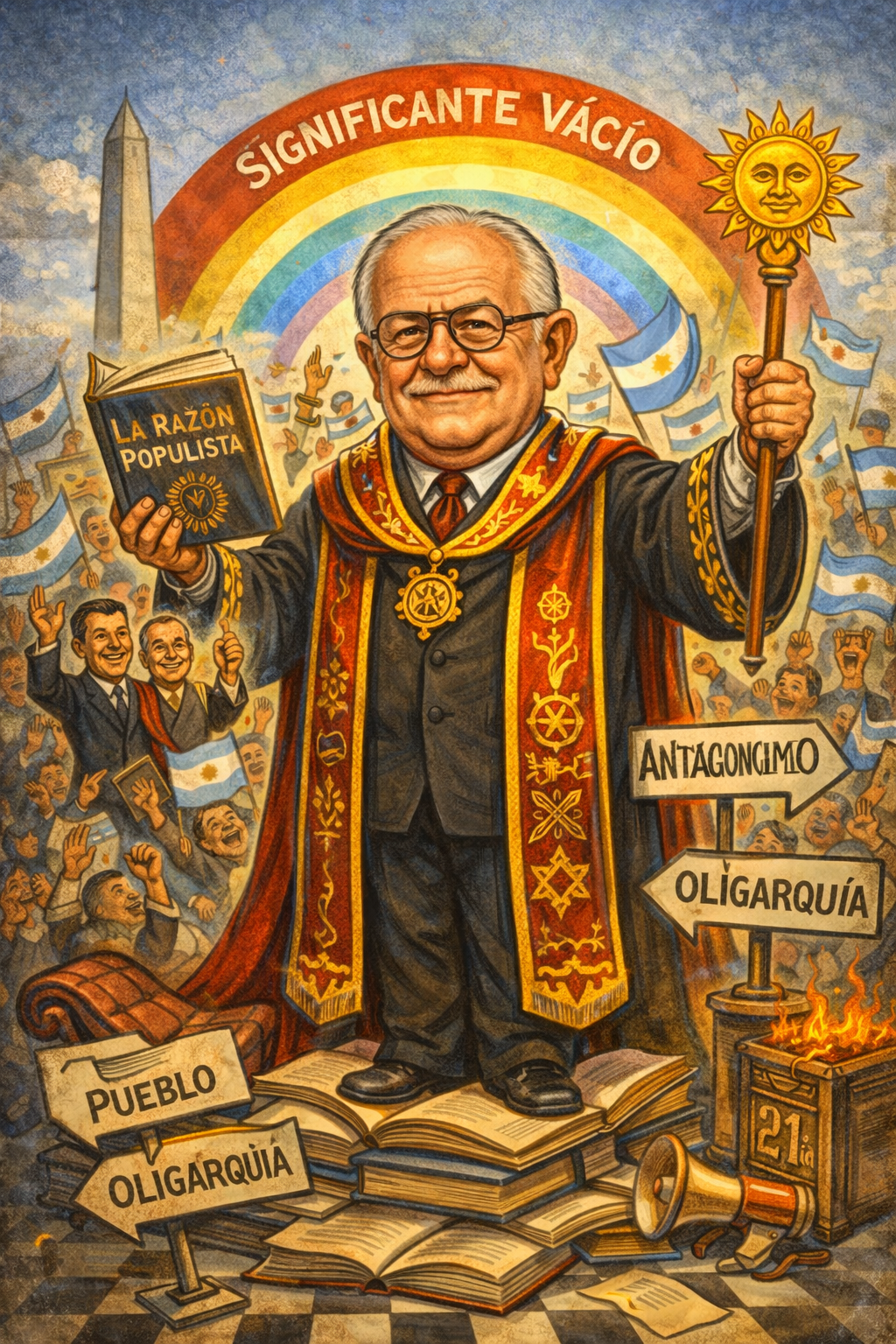 De la extraña confluencia entre la vieja liturgia distributiva de la “justicia social” peronista y el clima intelectual saturado de psicoanálisis lacaniano surgieron, décadas más tarde, algunas de las mutaciones filosóficas más peculiares de la izquierda contemporánea. Allí donde el peronismo había instalado la idea de un pueblo mítico enfrentado a una élite oligárquica, el lacanismo aportó una gramática conceptual para pensar ese pueblo como una entidad simbólica, siempre incompleta, siempre articulada alrededor de un deseo colectivo. En ese terreno híbrido florecieron teorías como las de Ernesto Laclau, donde la política deja de ser simplemente la administración de intereses materiales para convertirse en una compleja ingeniería de significantes, antagonismos y construcciones hegemónicas. Así, lo que alguna vez fue un movimiento populista de masas termina siendo reinterpretado como una sofisticada ontología política: el pueblo ya no es una categoría sociológica sino una figura discursiva, un vacío alrededor del cual se organizan demandas heterogéneas. El resultado es una curiosa alquimia intelectual: el viejo imaginario peronista reaparece vestido con el ropaje conceptual del lacanismo, convertido ahora en una teoría elegante que permite a buena parte de la izquierda del siglo XXI pensar su propia legitimidad política como si fuera, simultáneamente, una revelación filosófica y una operación clínica sobre el inconsciente colectivo.