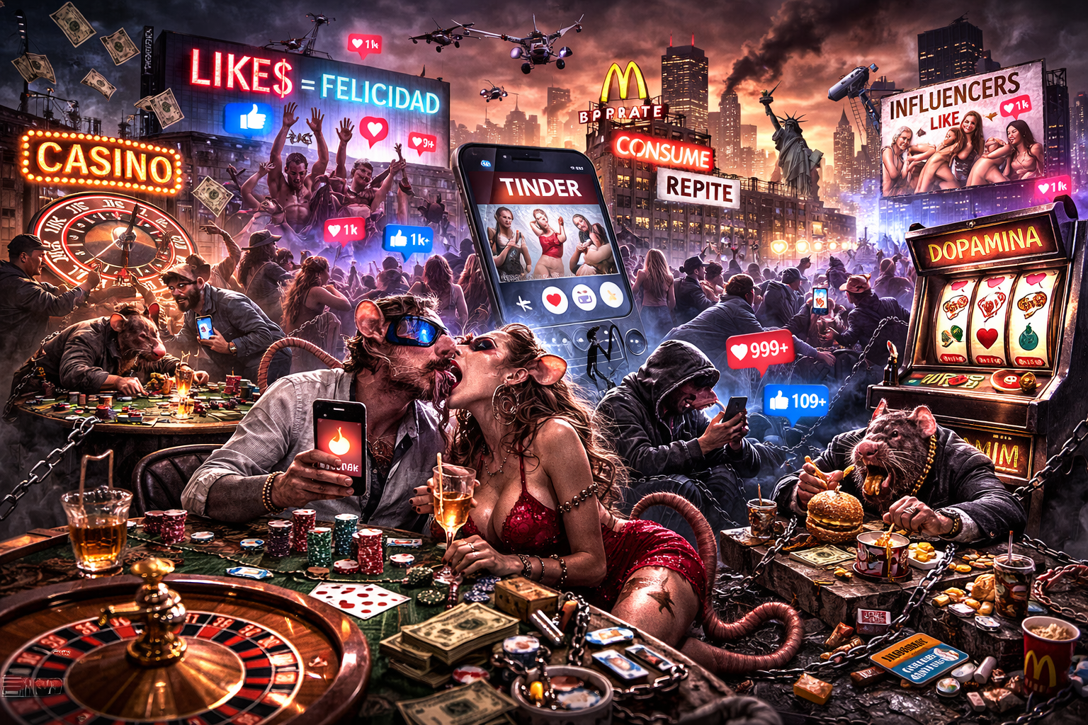 El hombre contemporáneo no ha caído como el antiguo romano, sino que ha sido domesticado. No es el héroe trágico que se precipita al abismo por soberbia, sino algo mucho más triste: una rata bien alimentada que ya no recuerda que alguna vez hubo bosque. Su mundo no es una selva hostil sino un laboratorio aséptico, perfectamente iluminado, donde cada estímulo ha sido calibrado para producir una conducta predecible. No hay látigos ni cadenas visibles: hay recompensas, microplaceres, pertenencias simbólicas. Y eso alcanza.